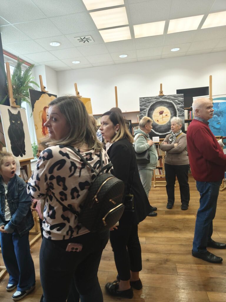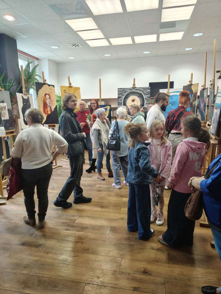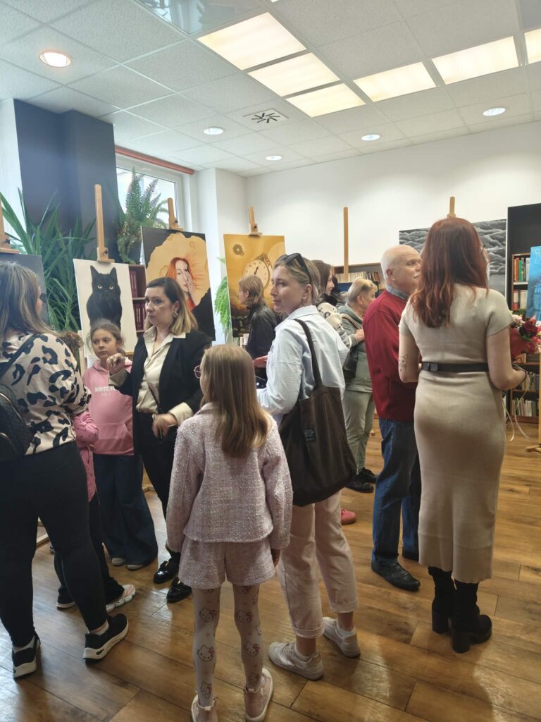 Artystka podzieliła się z uczestnikami swoimi inspiracjami oraz opowiedziała o procesie powstawania obrazów, które w niezwykle sugestywny sposób ukazują emocje, wrażliwość i złożoność ludzkiej duszy Uczestnicy mieli okazję nie tylko podziwiać prace, ale również porozmawiać z autorką i zadać jej pytania dotyczące techniki i przekazu jej twórczości.
