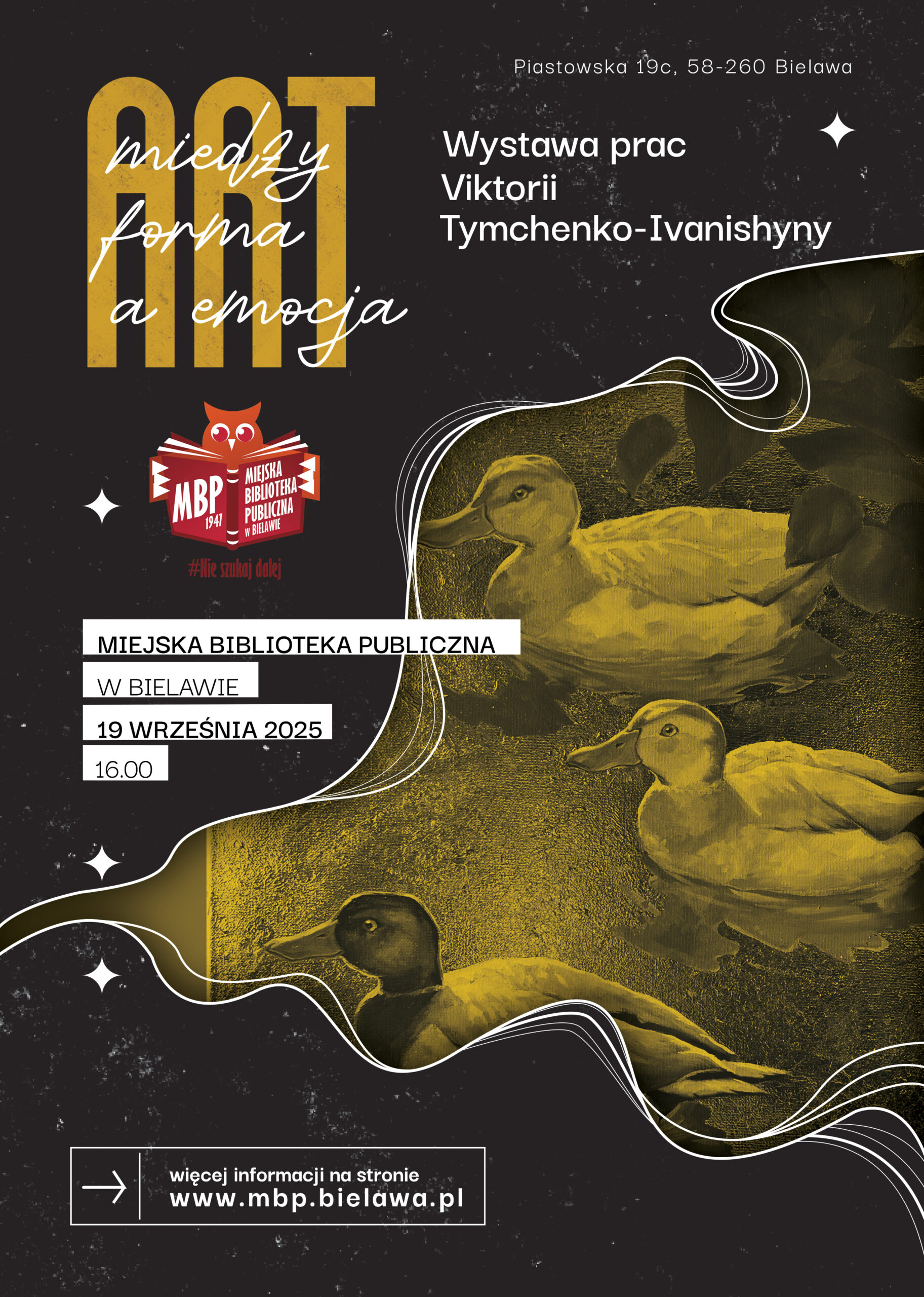 W piątek, 19 września, w Miejskiej Bibliotece Publicznej w Bielawie odbył się kameralny, lecz niezwykle udany wernisaż wystawy „Między formą a emocją” młodej ukraińskiej artystki Viktorii Tymchenko-Ivanishyny.